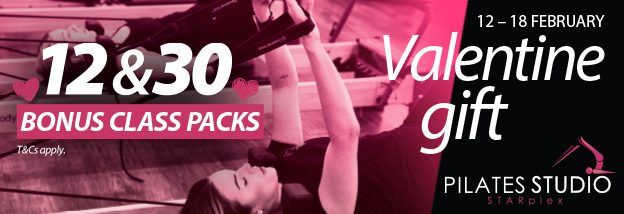 Reformer Pilates Valentine Gift! 12 & 30 Bonus Class Packs! Priced from $12.80* per class! Available between Wednesday 12 - Thursday 18 February, 2026. *T&Cs apply. CLICK HERE