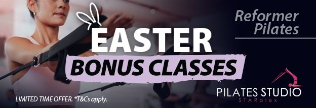 Reformer Pilates Easter Offer! Bonus Classes on 10, 25 & 50 Packs! Priced from $11.67* per class! Available between Thursday 2 - Monday 6 April, 2026. *T&Cs apply. CLICK HERE